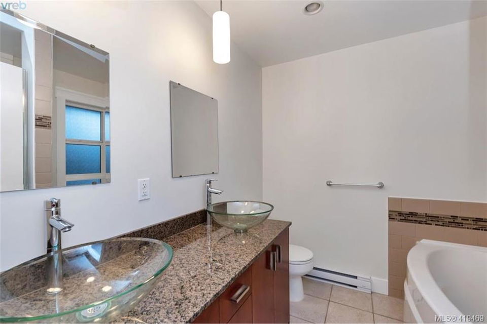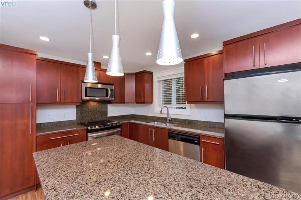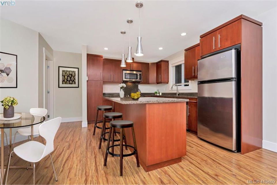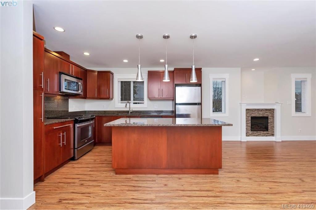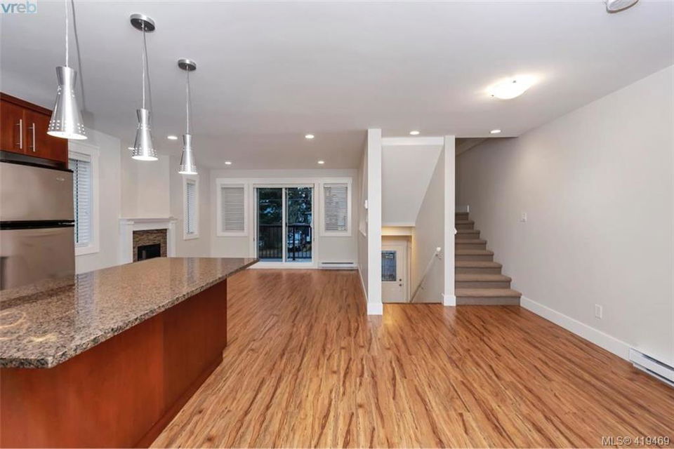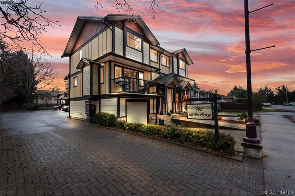 AVAILABLE IMMEDIATELY! Optimal location, walk to all amenities including Langford bus exchange. Fabulous townhome at 1528 sqft, 3 bedrooms and 4 bathrooms as well as garage. Come and have a look at this gorgeous very well appointed home on a quiet no thru street. This home is move-in ready, recently went through cosmetic refurbishing. Home offers granite counters, nice tile and rock as well as beautiful laminate flooring to name just a few. No need for garden tools here the progressive self managed strata (only 5 units) takes care of all exterior requirements. No age or rental restrictions, pet friendly some restrictions. Very inexpensive strata fee at just $265 the only other costs, hydro, insurance and property taxes, relatively cost effective living. 3rd bedroom on lower floor with ensuite, great for live/ work scenario.