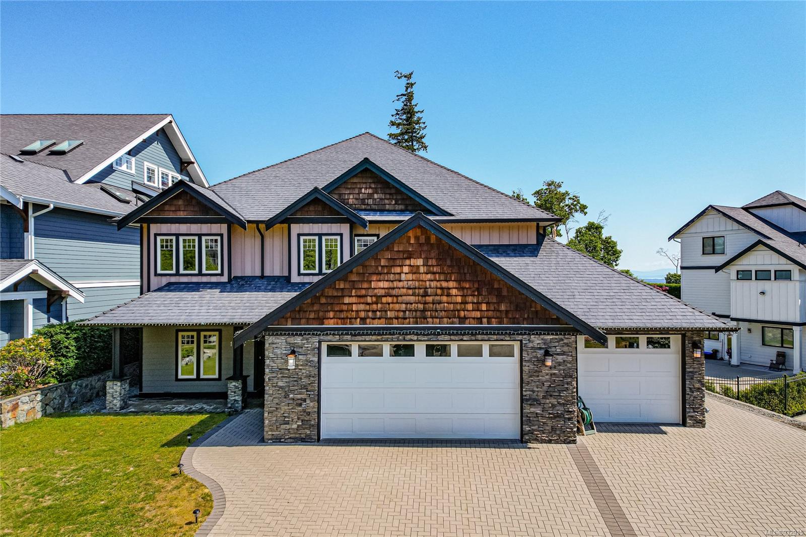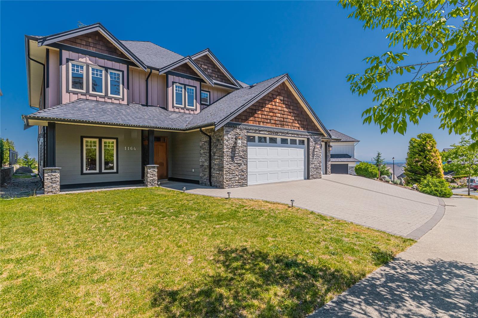 Welcome to 1164 Nature’s Gate in Langford, BC, located within the prestigious Bear Mountain community. This stunning property offers city, mountain and golf course views, a luxurious contemporary living experience. Featuring an open-concept design with high-end finishes, this home boasts elegance and comfort. The gourmet kitchen is a dream, equipped with stainless appliances and a spacious island. The living area is perfect for entertaining, with a cozy fireplaces and large windows that provide abundant natural light. Retreat to the master suite, complete with a walk-in closet, gas fireplace and a spa-like ensuite bathroom. Additional highlights include a private deck, perfect for outdoor relaxation, and access to fantastic amenities, including golf courses, hiking trails, and a fitness center. Bonus 2 bedroom spacious and bright suite. Tons of parking including 3 car oversize garage. Don’t miss the opportunity to own this exquisite home, experience the epitome of West Coast living.