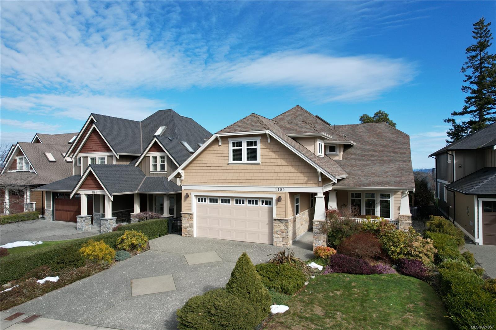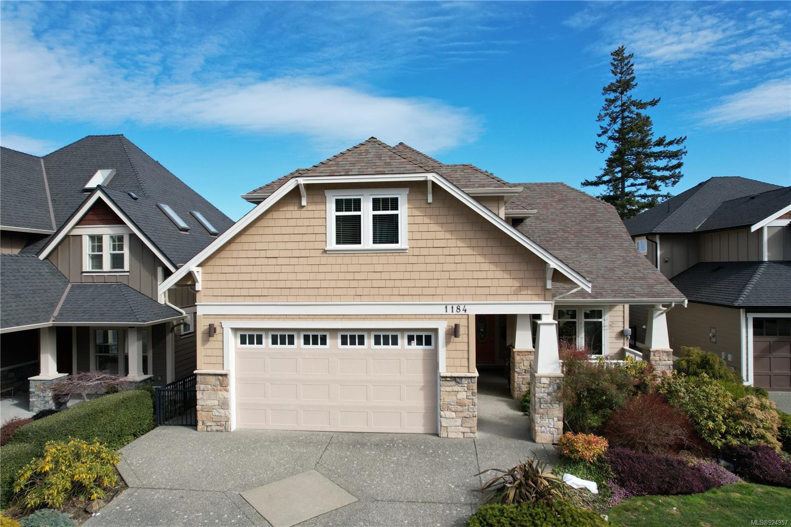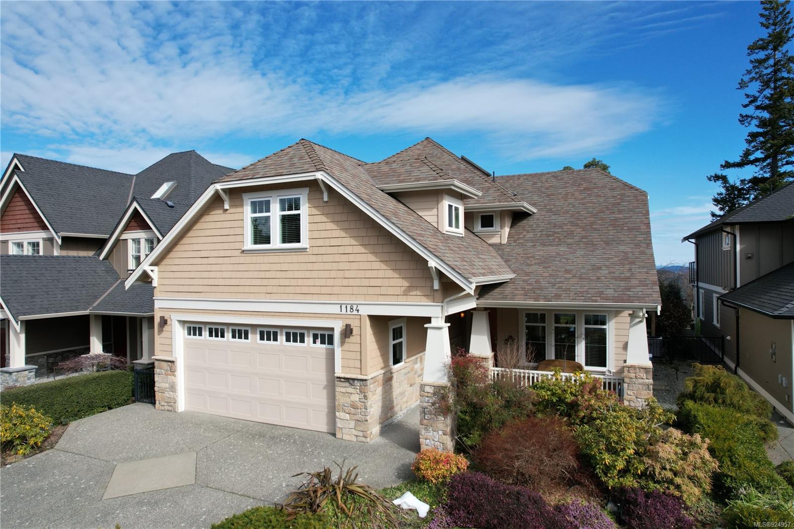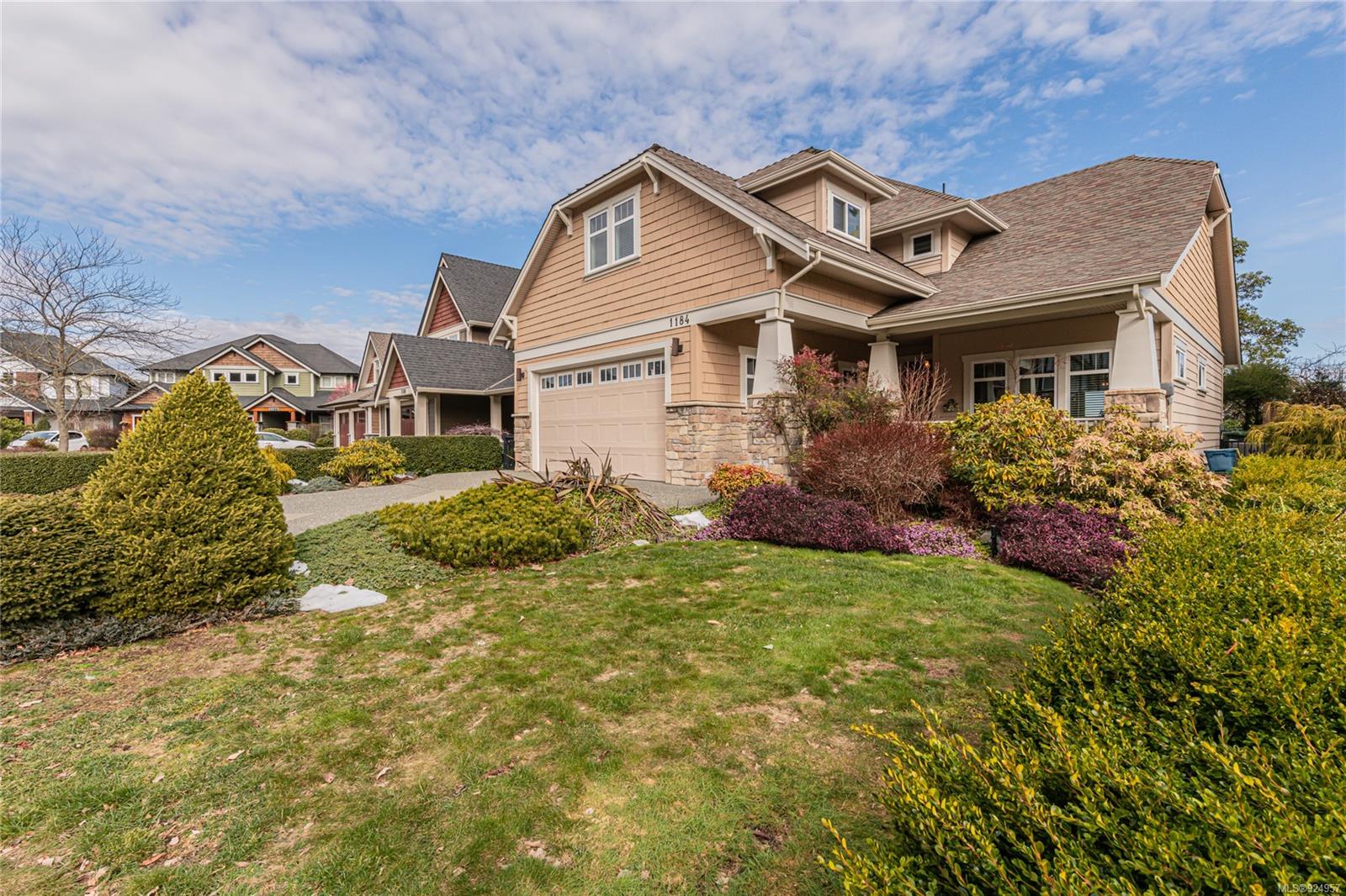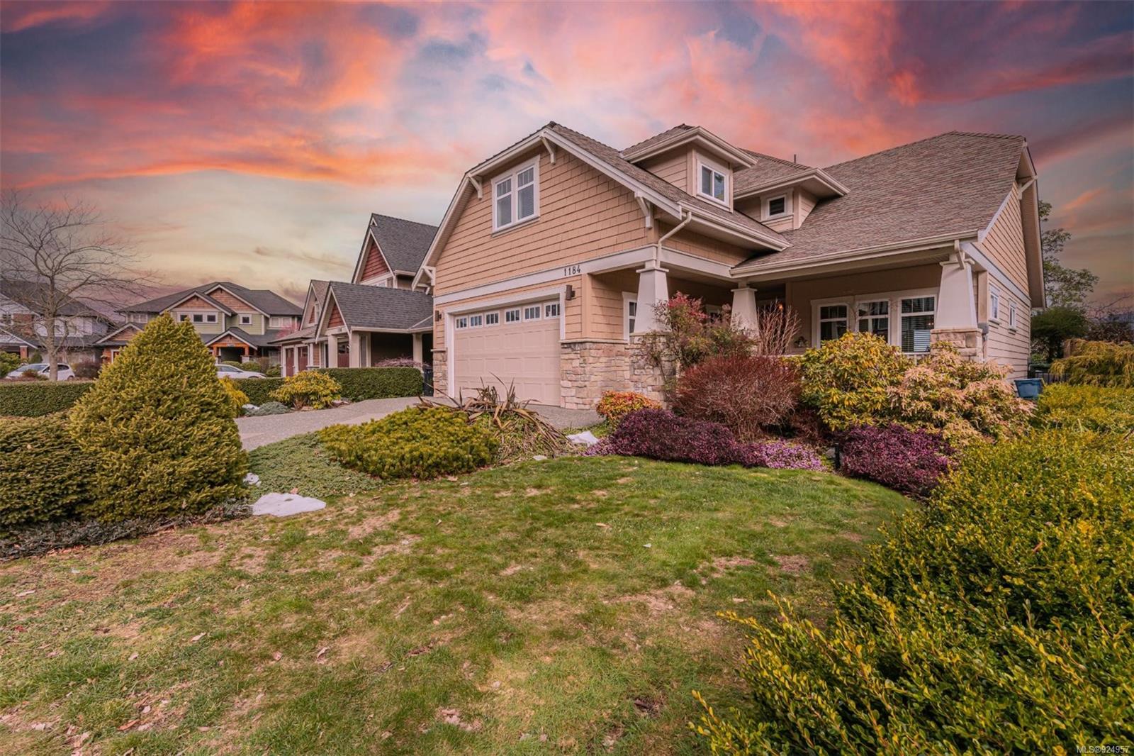 1184 Natures Gate offers stunning views from the Malahat to the west all the way to Mt Baker in the east at the Bear Mountain Resort Community on a quiet cul-de-sac. This is a Limona Group quality built home of over 2700 sqft, lightly lived in only ever occupied by two without pets on a low maintenance, nicely landscaped 6300 sqft lot and fully fenced yard. Main level living to walkout patio. Separate living room, dining room, family room and den surrounding the amazing kitchen with pantry, granite counter tops, wood shaker cabinets, stainless appliances and porcelain tile floor. Living room and family room with Hardwood floors. The upper floor Primary bedroom captures the mesmerizing views, generous with large sitting area, 5-piece ensuite and walk in closet. Two additional bedrooms, large bonus room over the garage. Parking for 4 two in and two out, full crawl space, forced air with heat pump. Friendly neighbourhood a terrific place to call home.