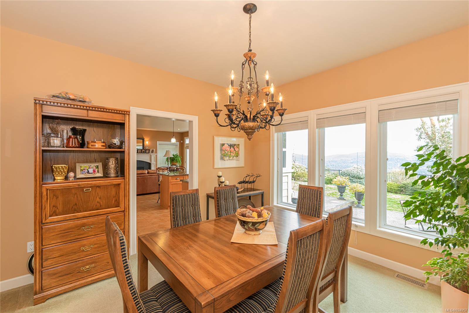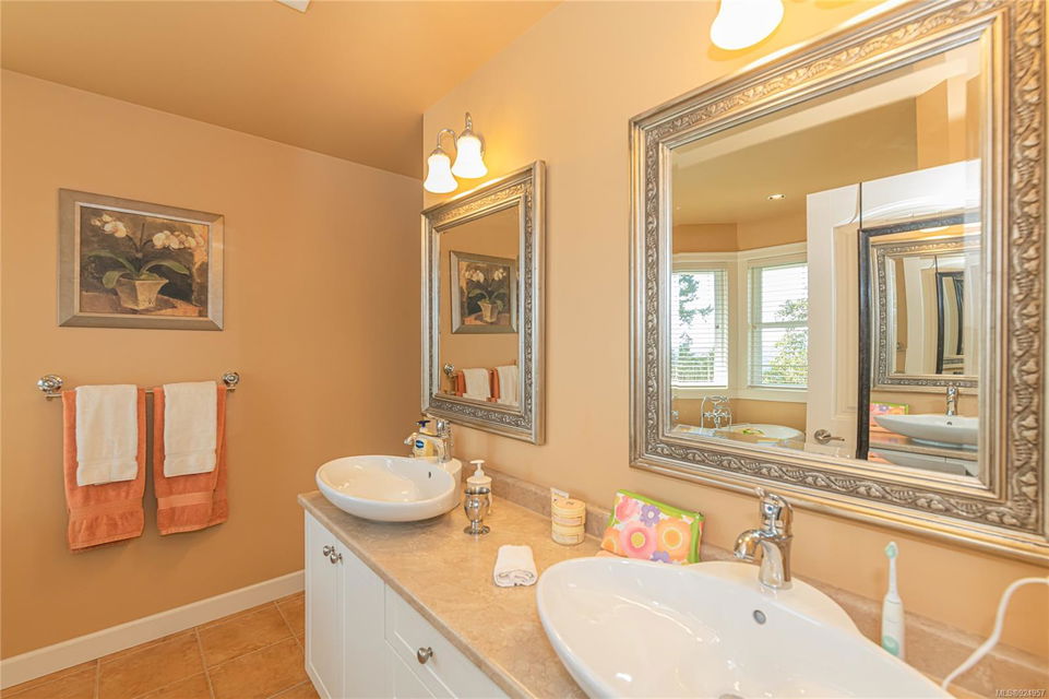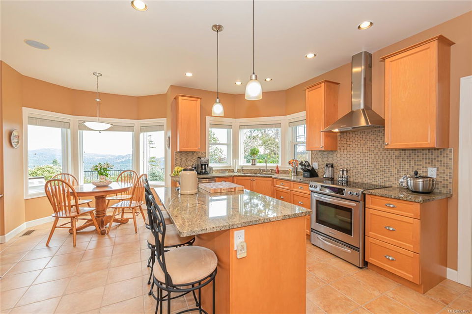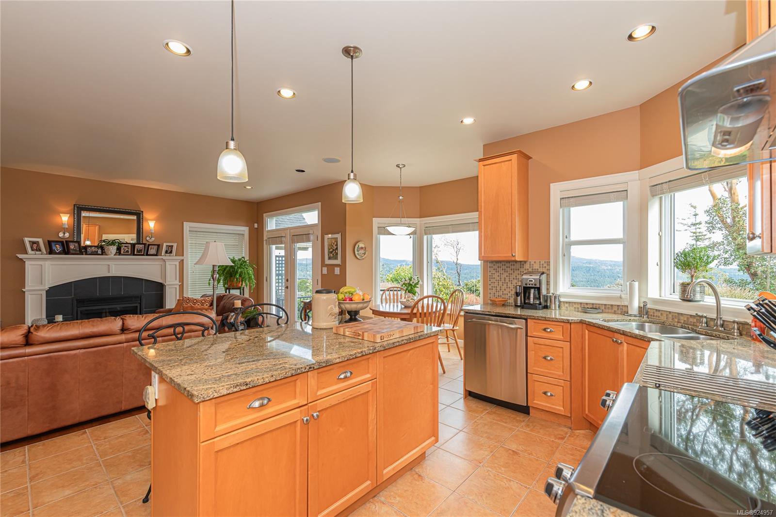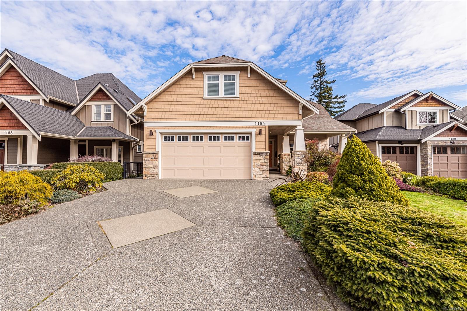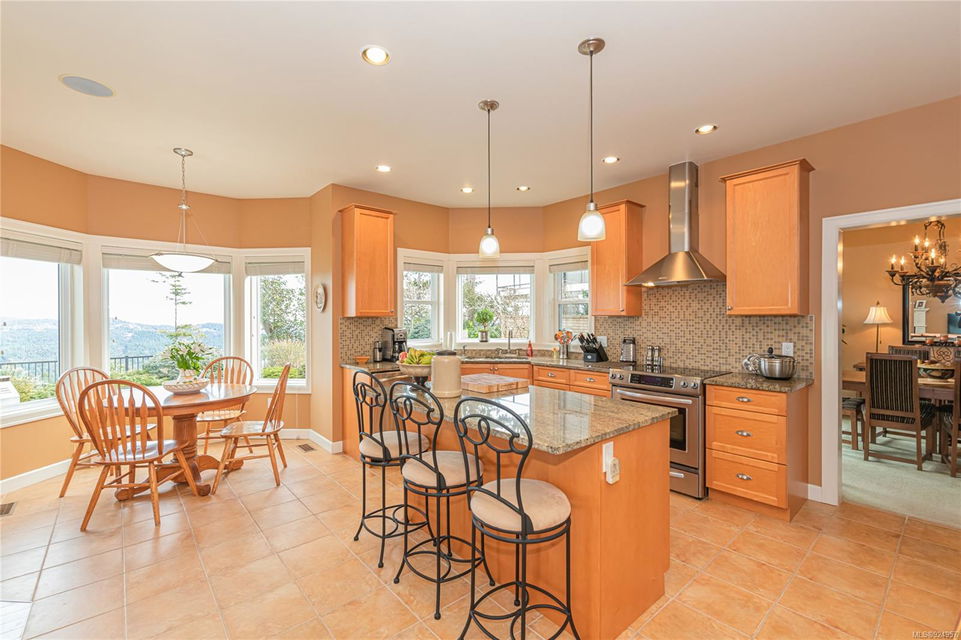 1184 Natures Gate offers stunning views from the Malahat to the west all the way to Mt Baker in the east at the Bear Mountain Resort Community on a quiet cul-de-sac. This is a Limona Group quality built home of over 2700 sqft, lightly lived in only ever occupied by two without pets on a low maintenance, nicely landscaped 6300 sqft lot and fully fenced yard. Main level living to walkout patio. Separate living room, dining room, family room and den surrounding the amazing kitchen with pantry, granite counter tops, wood shaker cabinets, stainless appliances and porcelain tile floor. Living room and family room with Hardwood floors. The upper floor Primary bedroom captures the mesmerizing views, generous with large sitting area, 5-piece ensuite and walk in closet. Two additional bedrooms, large bonus room over the garage. Parking for 4 two in and two out, full crawl space, forced air with heat pump. Friendly neighbourhood a terrific place to call home.