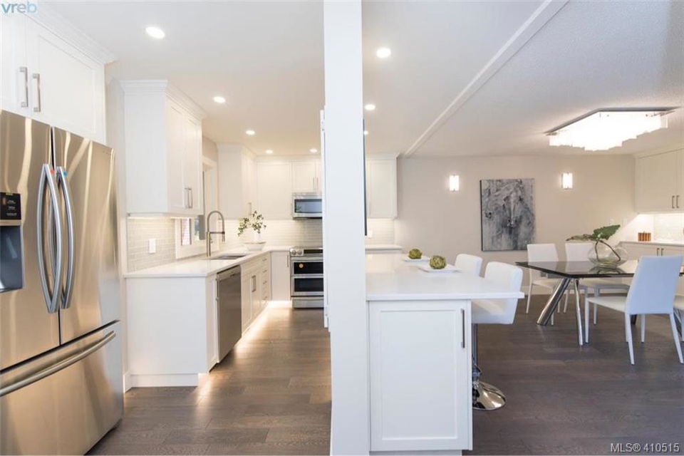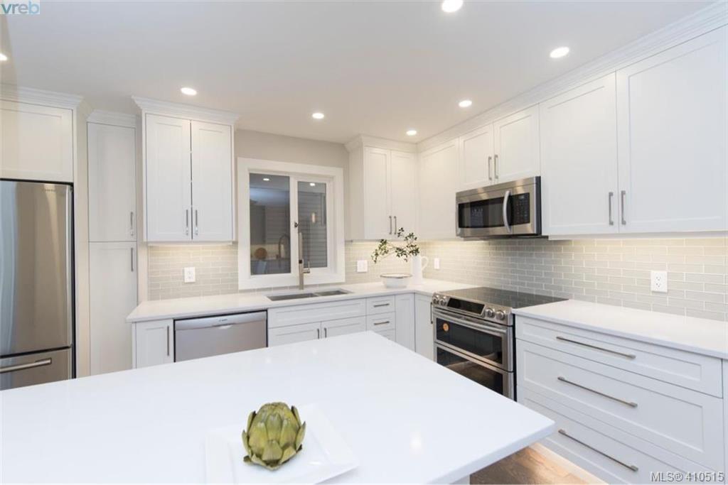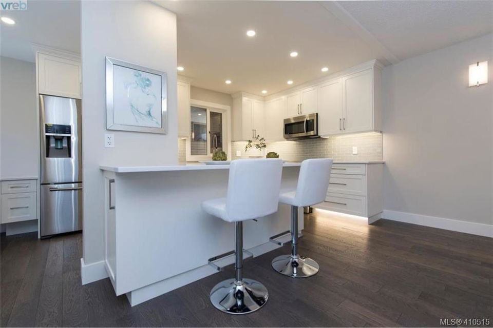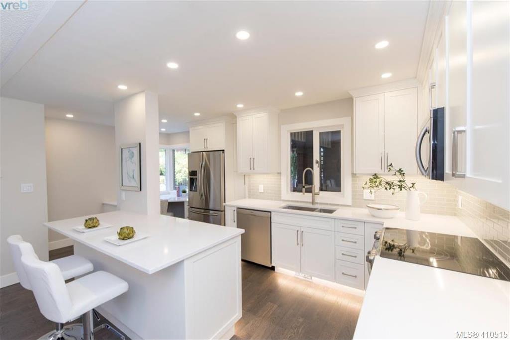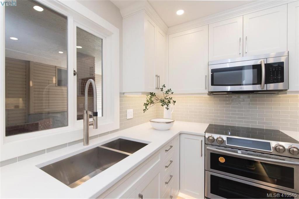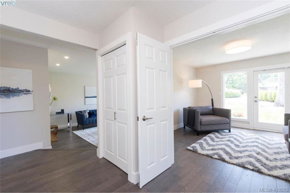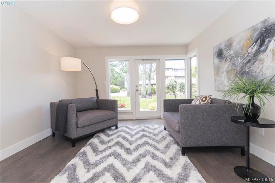 Now is your chance, Uplands Estates ! The perfect place to call home. As new SINGLE level townhome spectacular setting, end unit with no one above bedrooms, tons of natural light, patio and living area faces west, large detached double garage with additional storage. This home has been magnificently renovated from top to bottom, all 1776 sqft of it, all new cabinets with additional built ins, gorgeous hardwood floors, heated tile floors in both bathrooms, quality appliances, linear fireplace, furnace, electrical panel, light fixtures, plumbing fixtures, tile work, tub and shower. 3 bedroom if you want it or make the 3rd bedroom a flex room. This awesome lock and go gated community is very friendly and proactive when it comes to maintaining your asset. This complex backs onto Uplands Golf Club, is next door to Henderson Recreation Centre and only minutes to Cadboro Bay Village and Beach. MOVE IN NOW!