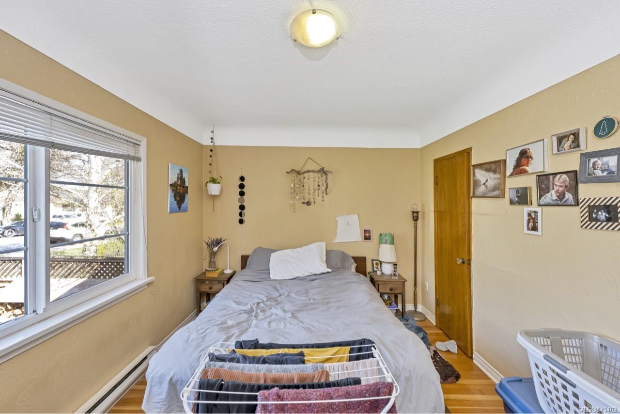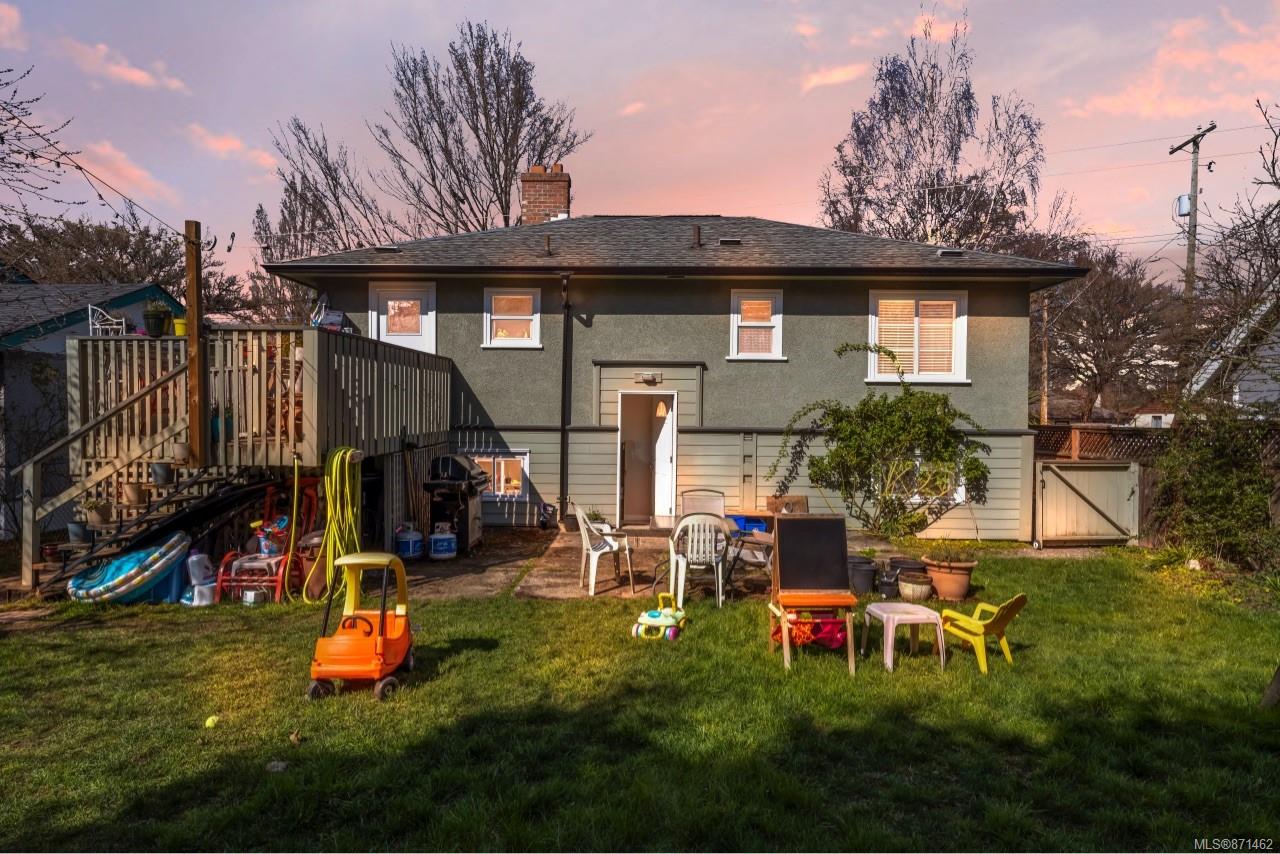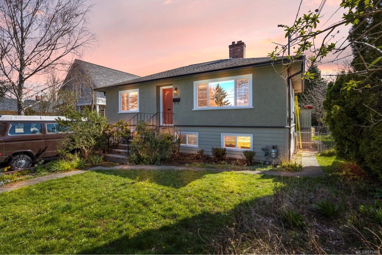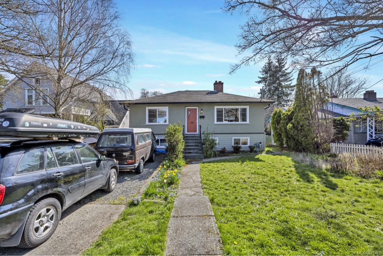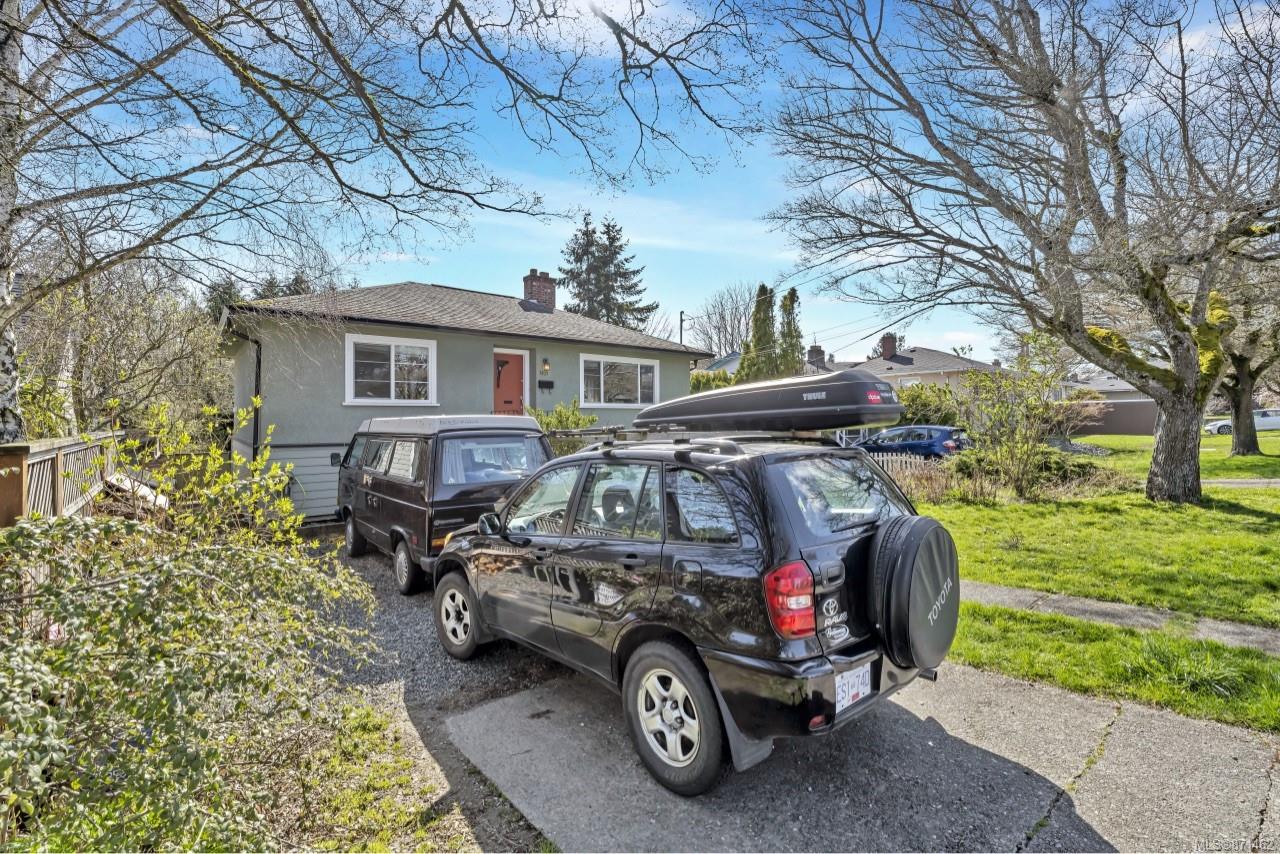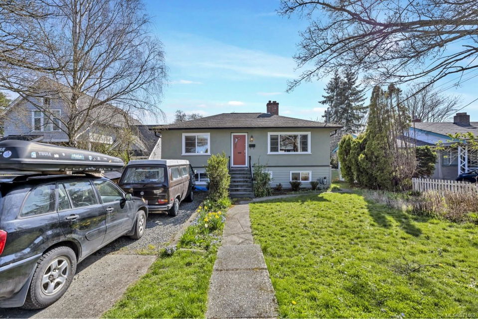 Super cute 50’s home, cove ceilings, oak floors and then you realize the revenue it becomes a “cash cow”. 5 bedrooms in total, 2 bedrooms main house up, no access to lower, nice living-dining room and kitchen that pours out onto a generous sun-drenched deck and backyard. The lower level has 3 bedrooms, rented individually. Both upstairs and downstairs have their own laundry. Awesome location walk to all amenities including Hillside Mall, Cedar Hill Rec Centre. No need to do anything well maintained and updated, whether it is a revenue property, or you want to move in it is ready to go.