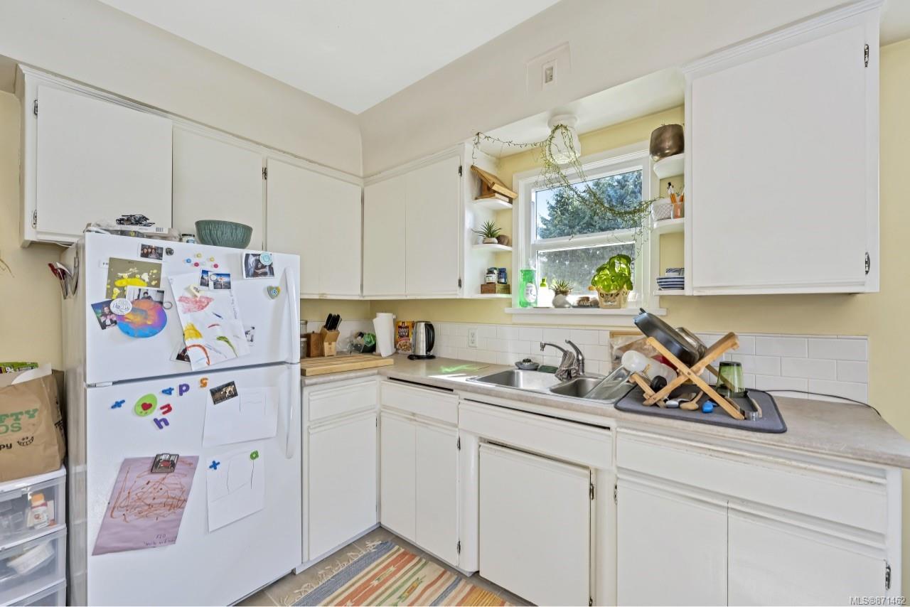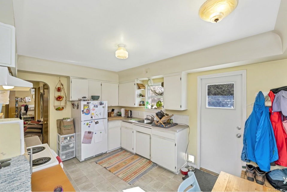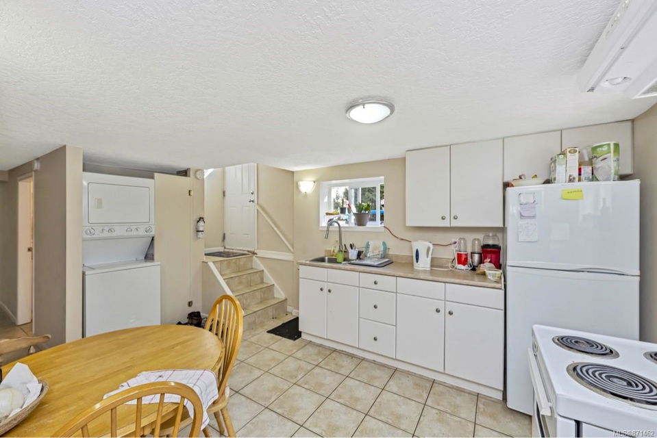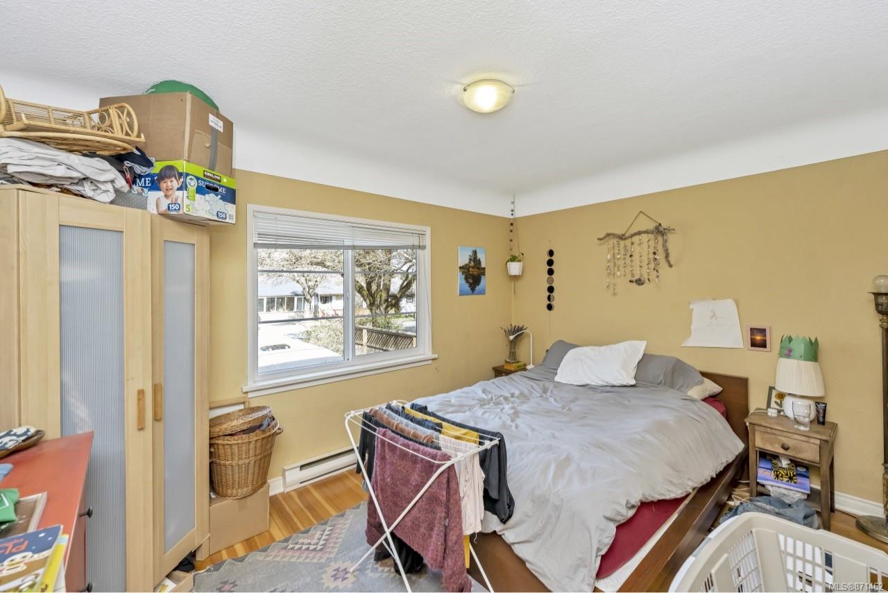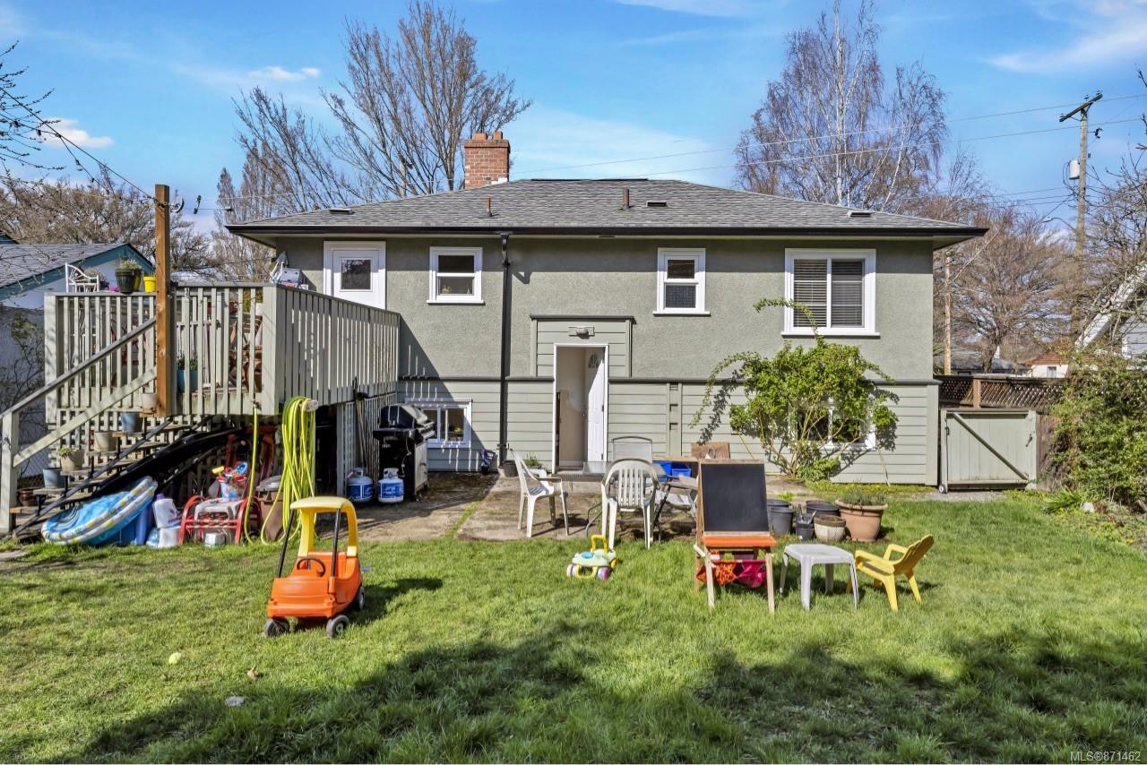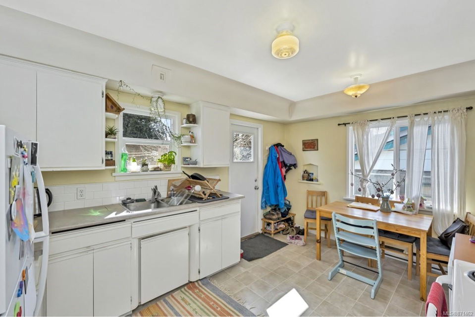Super cute 50’s home, cove ceilings, oak floors and then you realize the revenue it becomes a “cash cow”. 5 bedrooms in total, 2 bedrooms main house up, no access to lower, nice living-dining room and kitchen that pours out onto a generous sun-drenched deck and backyard. The lower level has 3 bedrooms, rented individually. Both upstairs and downstairs have their own laundry. Awesome location walk to all amenities including Hillside Mall, Cedar Hill Rec Centre. No need to do anything well maintained and updated, whether it is a revenue property, or you want to move in it is ready to go.