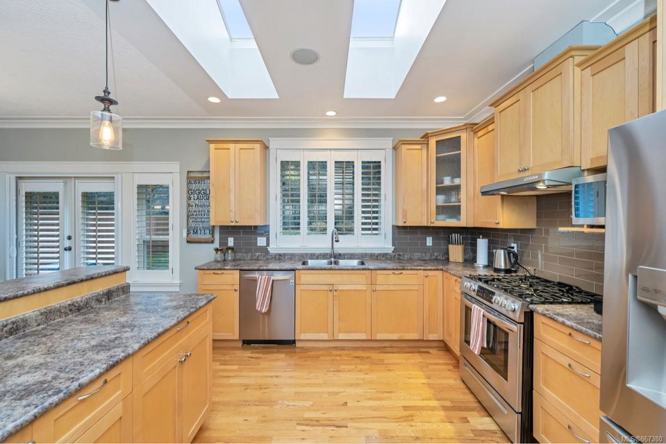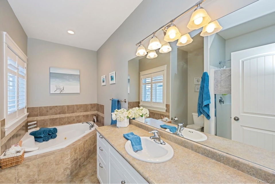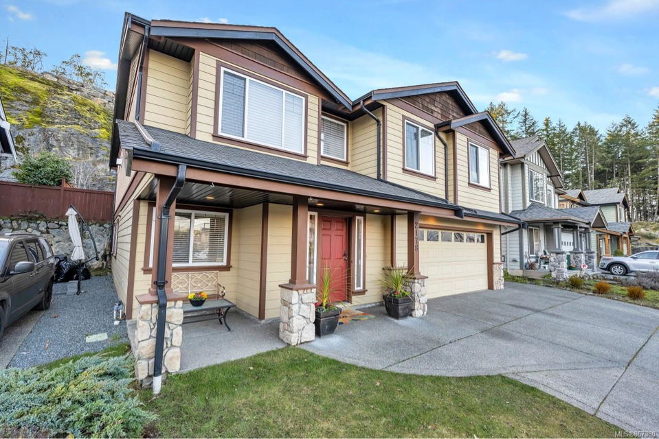 Very popular family subdivision known as Eagle Ridge at the bottom of Bear Mountain sits this awesome home just under 3000 sqft, currently a 4 bedroom 2.5 bath main home with legal 1 bedroom suite, easily converted back to 2 bedroom suite if desired 762 ssqft. Fantastic floor plan with main level walkout to a generous patio and backyard. Open concept kitchen, dining, living area, distant views out to the east. The primary bedroom also has access to the yard (a great spot for a hot tub) or just relax in your 4 piece en-suite with jetted tub. Separate living area from the family room, family room on lower level could also second as a home office. Nice sized garage plenty of parking for everyone in the oversized driveway. Close to all amenities in the area of Millstream Village, more amenities coming in the immediate area in the near future.