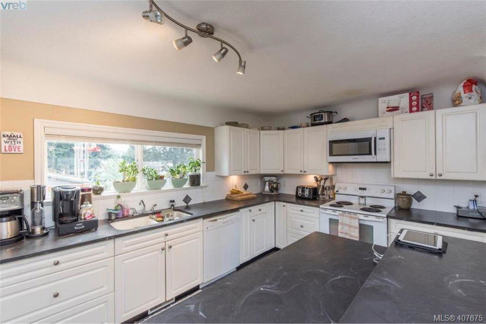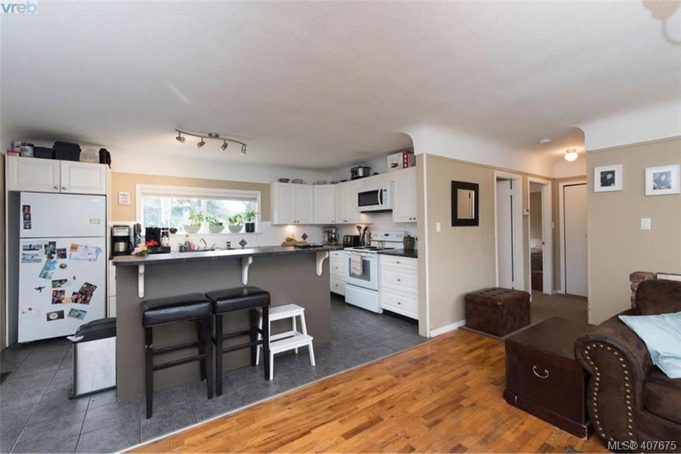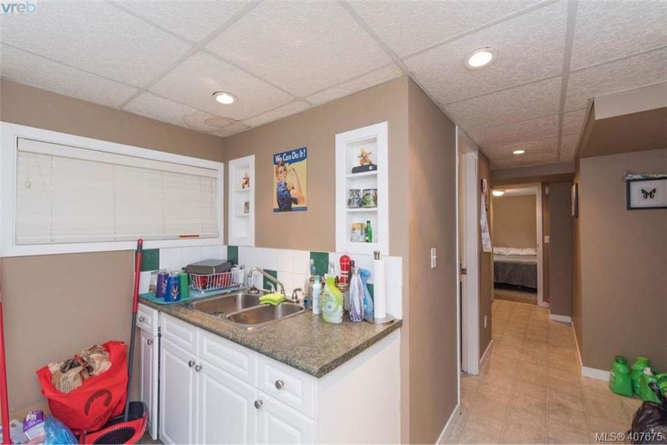 Walk to Langford Lake Beach or Glen Lake Beach among all the other amenities including Westhills Stadium, City Centre Park, Quality Foods, Westshore Town Centre, Belmont Market and across the street from Belmont High School. Vista views from the front and back. 3 bedroom home open concept kitchen, living, dining, family rooms totally separate from 1 bedroom suite each with their own laundry and plenty of off street parking. Much of the heavy lifting has been done, just move in or potentially keep current long term tenants (mth to mth) up and down at $2750/ mth plus utilities. Workshop/ garage is in need of repair, taken into account determining list price, large carport 28×12. Lots of character to this 50’s home including the original hardwood floors and cove ceilings. Already hooked up to sewer, 200 amp service plus sub panel for shop, roof more than half its life left, windows redone all vinyl. Lot 7585sqft. On transit route, both directions straight out front.