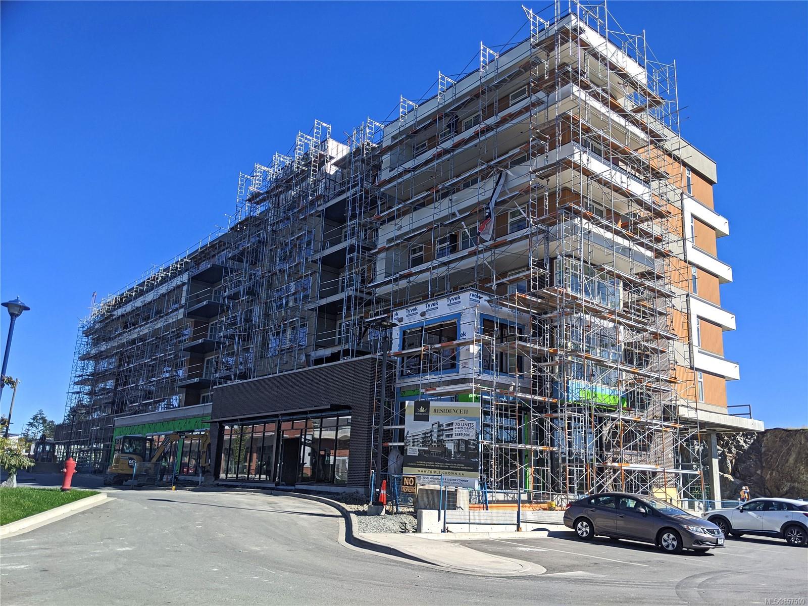 Residence II at Triple Crown. The third phase of this very popular comprehensive residential/ commercial development in the City of Langford, specifically Florence Lake, North of Hwy 1, minutes to all amenities including rec centers, trails and surrounded by 5 golf courses. Many of the 70 suites with views. The contemporary design inside and out will not disappoint, very clean open concept. Fuel is gas for the stove, hot water on demand making it very cost-effective as well as a ductless heat pump for heating/ cooling. All units are 2 bedrooms, 2 BTH. Gorgeous appliance package, designer cabinets, Euro laminate floor, ceramic tile in bathrooms, custom blinds. This unit has 1 underground secure parking spot and a storage locker. No age, pet, BBQ, or rental restrictions. No Property Transfer Tax. The exclusive long term Financing package, fast FIRM approvals protecting your purchase until closing. ONLY 5% DEPOSIT