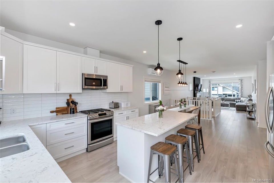 McCormick Meadows flagship floorplan “Sechelt”! As new, bright, spacious family home in a great family neighborhood, presents like a show home. Offering 5 bedrooms and 3 bathrooms including a massive 2 bedroom legal suite which can be incorporated into the main home or a totally self-sufficient suite. Open concept kitchen, living and dining that pours out into a beautiful fully fenced yard. So many upgrades in this home from the original offering. Some of the highlights, quartz counters in the main kitchen/ bathrooms, ductless heat pump, French door fridge bottom mount freezer, gas stove with griddle and warming drawer, $3500 appliance upgrade, laminate floor continued to stairs and hallway, expanded patio, central vac, pantry pullouts, garden shed to name a few. Generous Master bedroom, en-suite, and walk-in closet. No parking issues here, double garage plus side parking and driveway that can accommodate 3 cars across. Landscaping and irrigation everywhere.