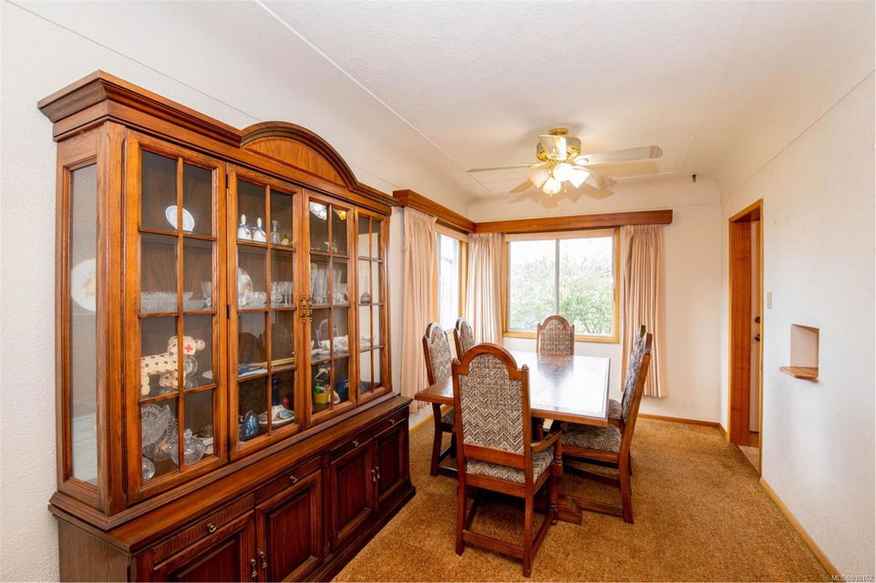 First time on the market in over 65 years, character preserved cove ceilings and original hardwood floors hidden under the carpet. Main level offers 3 bedroom, 1 bathroom, lower level was turned into family room with bar and a couple of additional rooms for the hobbyist, 1 additional bedroom, has a 2 piece bathroom, suite potential provided you don’t add a garden suite in the rear yard up to 700 sqft (verify with Saanich). Lot is over 7000 sqft, rear of the property faces west, backing onto Colquitz Middle School. Lots of additional parking, and room for the RV or boat. Lovingly maintained over the years, ready for some new ideas and family memories. Probate has now been granted, available immediately.