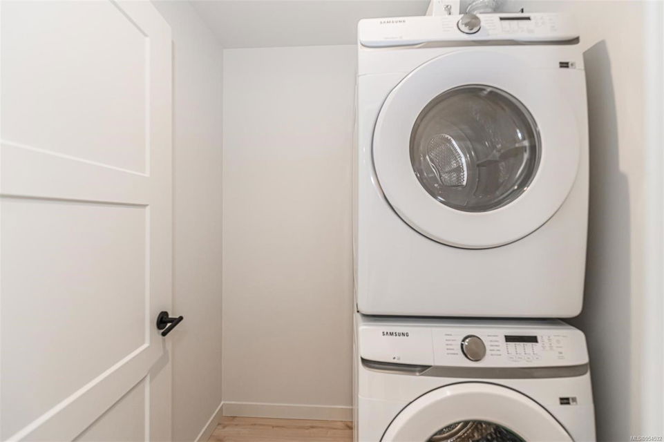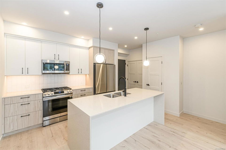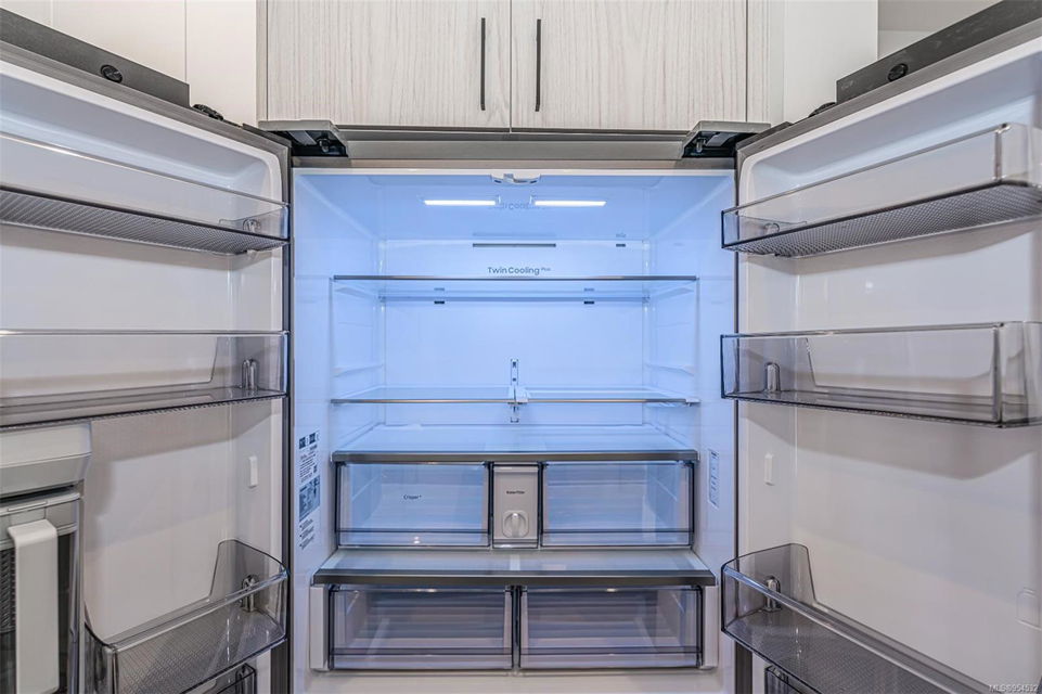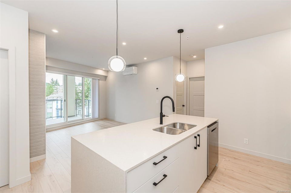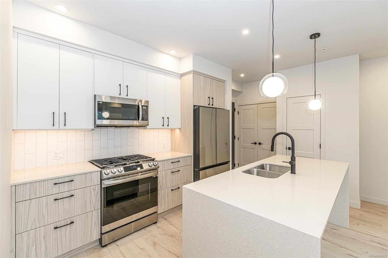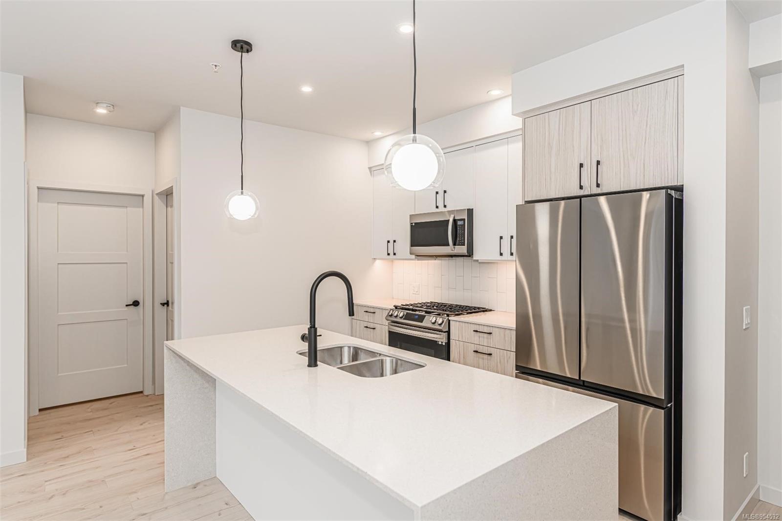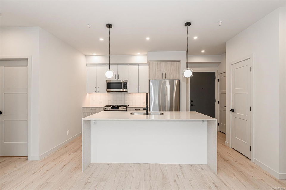 Brand New beautiful 2 bedroom, 2 bathroom condo in prime location close to shopping, dinning and transportation. Open concept with stunning kitchen including pantry, quartz counter tops and waterfall island, Samsung appliance package, fridge with ice and water, convection gas stove with air fryer, dehumidifier and griddle. Full size stacking washer and dryer. Ductless split heat pump in each bedroom and living area. Awesome deck westerly exposure looking at Bear Mountain. 2 parking spots, storage locker, gym and rooftop patio/ amenity room. Rentals, pets, BBQ’s ok, smoke-free building.