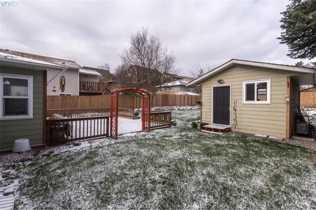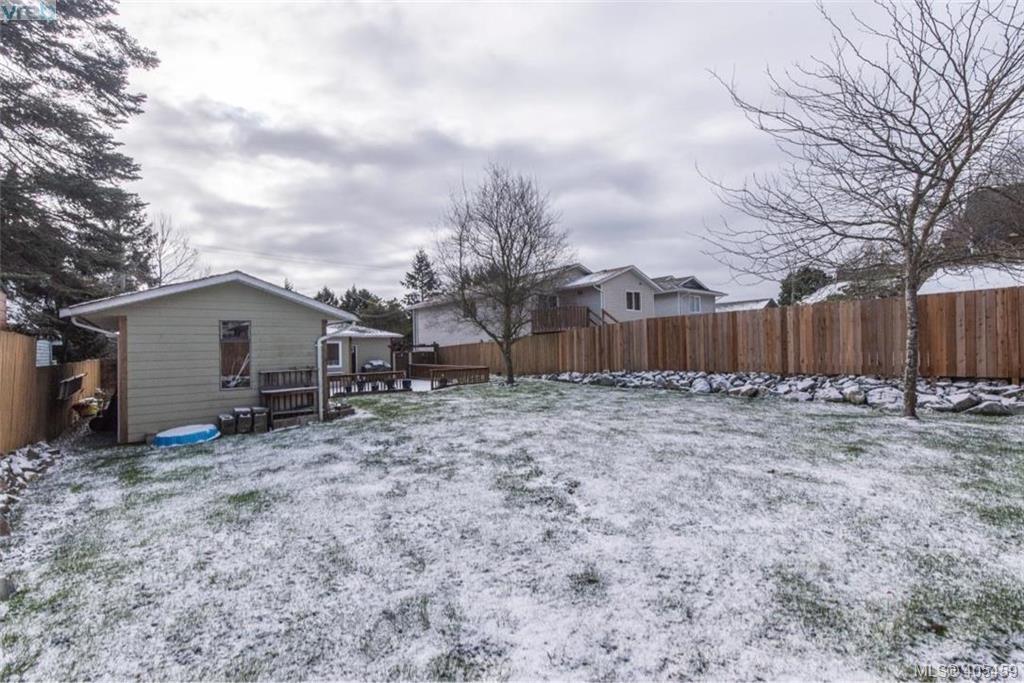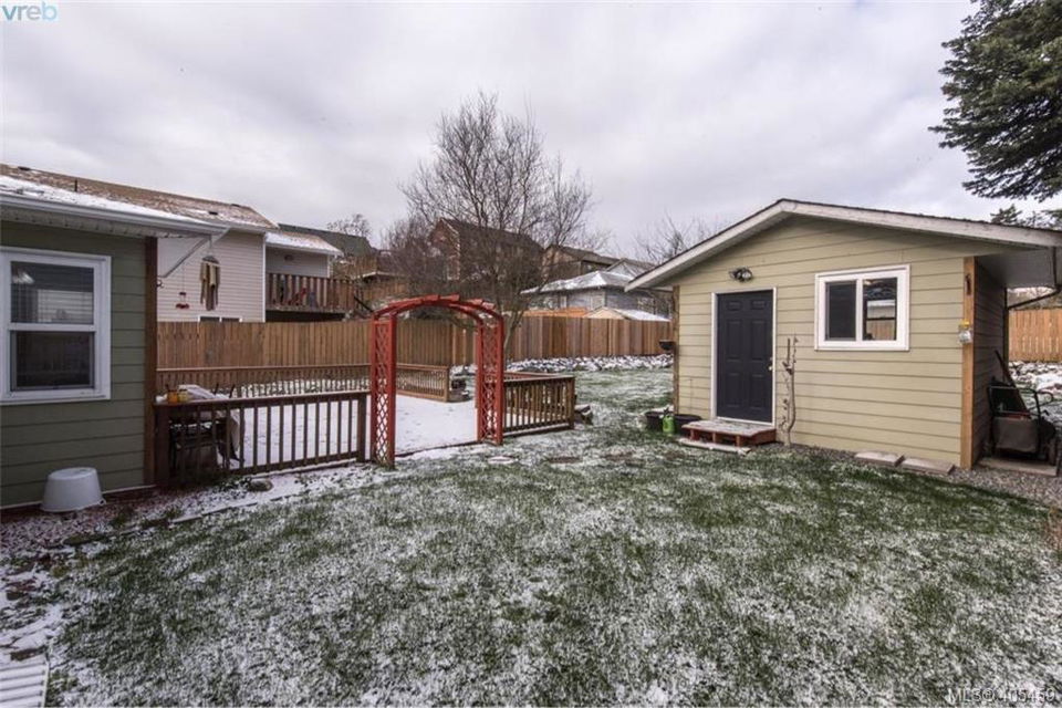 RANCHER ALERT! large sunny lot in the heart of Langford, short stroll to Goldstream Ave offering any and all amenities. 3 bedroom home with bonus finished living space in converted garage with endless possibilities, main house on a crawl space. Quaint kitchen and eating area, living room, with wood burning fireplace, laminate wood floors, making this a very cozy home. Massive patio out back for gatherings and barbecues as well as a detached shed that is heated and insulated. This home has been lovingly cared for over the years, lots of updating done but room in price to do more. Plenty of off road parking even room for an RV or boat. Already hooked up to sewer.