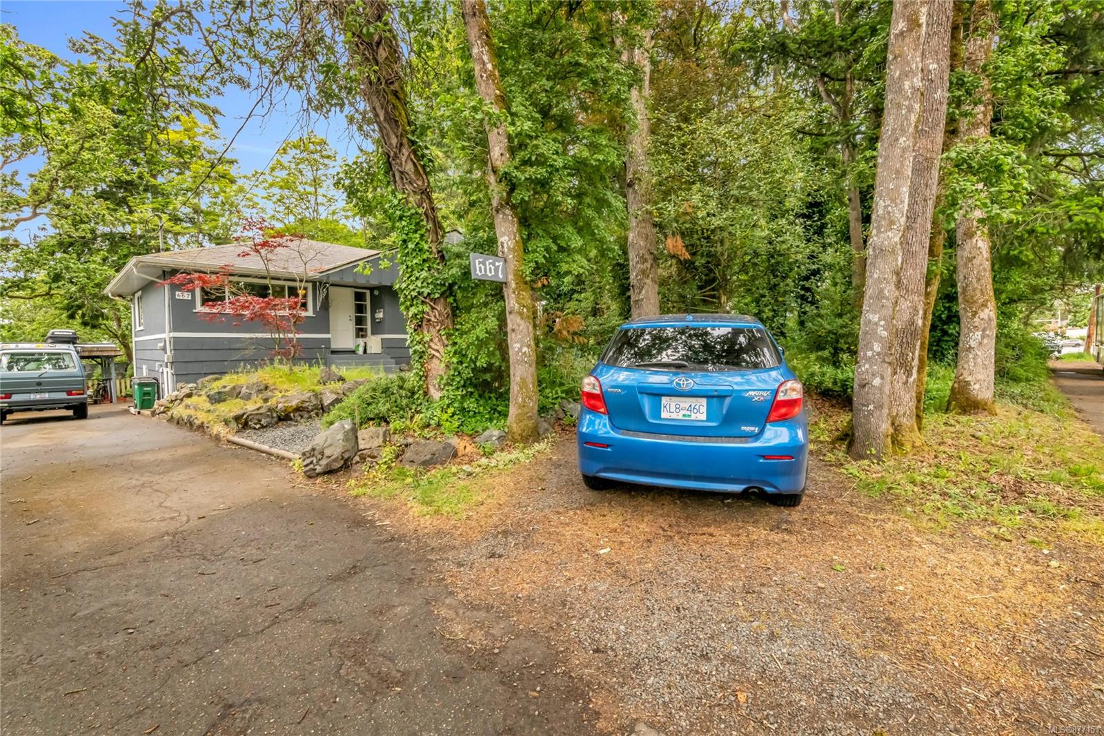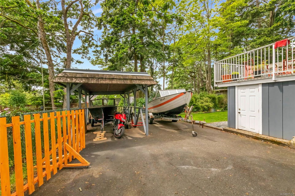 Fantastic home in a great location, 7780 sqft lot, very private back yard (south-facing) detached carport, wrap-around deck, workshop/ additional storage. This home offers a two-bedroom one bath main home and a lower suite one bedroom den (second bedroom) one bath. There is access from the main house to the suite so it could be converted to be one family home, inlaw or otherwise. Most of the heavy lifting has been done in this home, hydro 200 amp, roof/ gutters were replaced 7 years ago, windows were just replaced. Lots of character here right down to the original hard wood floors and wood-burning fireplace. Plenty of parking for everyone including a boat or RV. Currently rented up and down. Lots of options with this home.