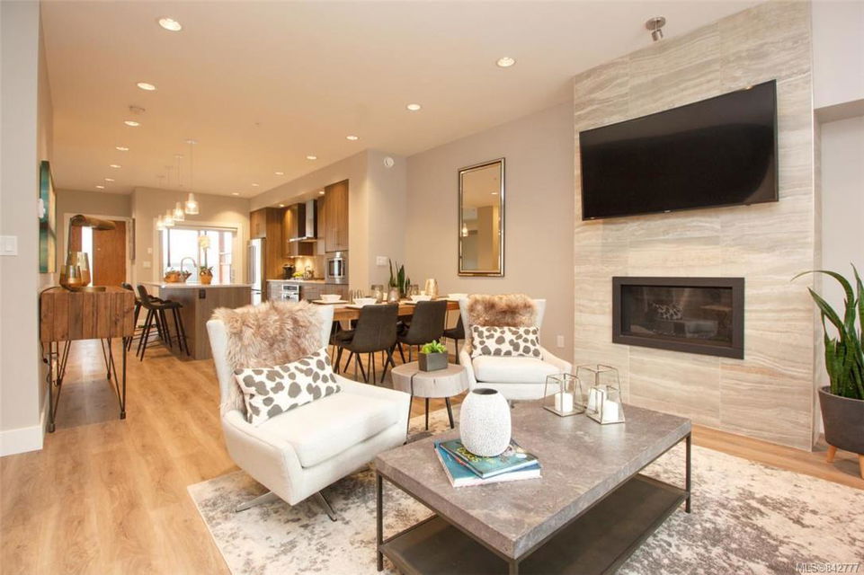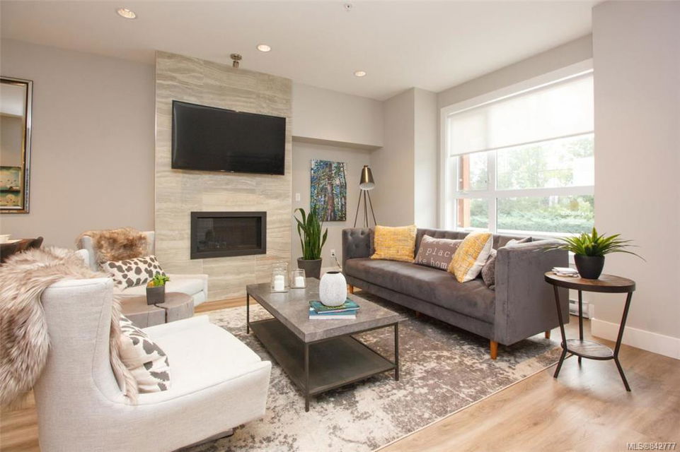 OPEN HOUSE SUNDAY 1-3!!! Welcome to the Marigold, an exceptional mixed use development of townhomes, duplex style townhomes and condominiums in one of Central Saanich’s most desirables areas. The Marigold is a thoughtfully laid out 8 acre site minutes from downtown Victoria, close to the ocean, Lochside Trail and all the natural beauty the Saanich Penninsula has to offer. These classic row style walk-ups boast an inviting stone feature front porch, where you can enjoy your coffee with each morning sunrise. Once inside you’ll enjoy the practical yet elegant layout of the bright and spacious interior offering 3 bedrooms, 3 baths with 9′ ceilings throughout and a full unfinished basement. This particular home is an end unit enjoying a screened patio and outside area. Standard features include natural gas, hot water on demand, gourmet stainless appliance package, quartz counters, soft close cabinets and much more. Price includes GST! No B.C. Property Transfer Tax!